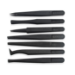 7 in 1 Black Plastic Tweezers MSPP70476, Black, Flat, Curved, Straight, 100 g