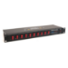 This model in the PDU16 series is a 1U distributor with ten switchable channels protected by an overload trip switch. Each numbered channel has a dedicated rocker switch with neon indicator light for quick and easy identification.
