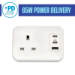 WHITE DESKTOP 1X POWER - DUAL USB C + A CHARGER - 65WICON desk power and data units symbolise the most stylish and flexible offering available with many features built in, 1x switched 13A Socket with 3.15A re-settable thermal fuse, 65W USB Dual USB type C PD + USB type A QC3 smart charger as standard, Includes Desk Clamp Kit, No Electrician Required - Mains Connection via a 3 Pole (Wieland Style) Power Cable, BS6396:2022 Approved for Office and Educational Power Installation